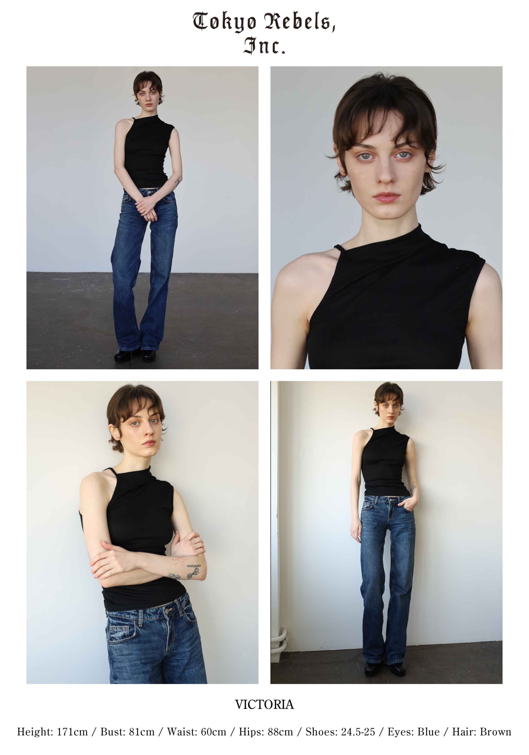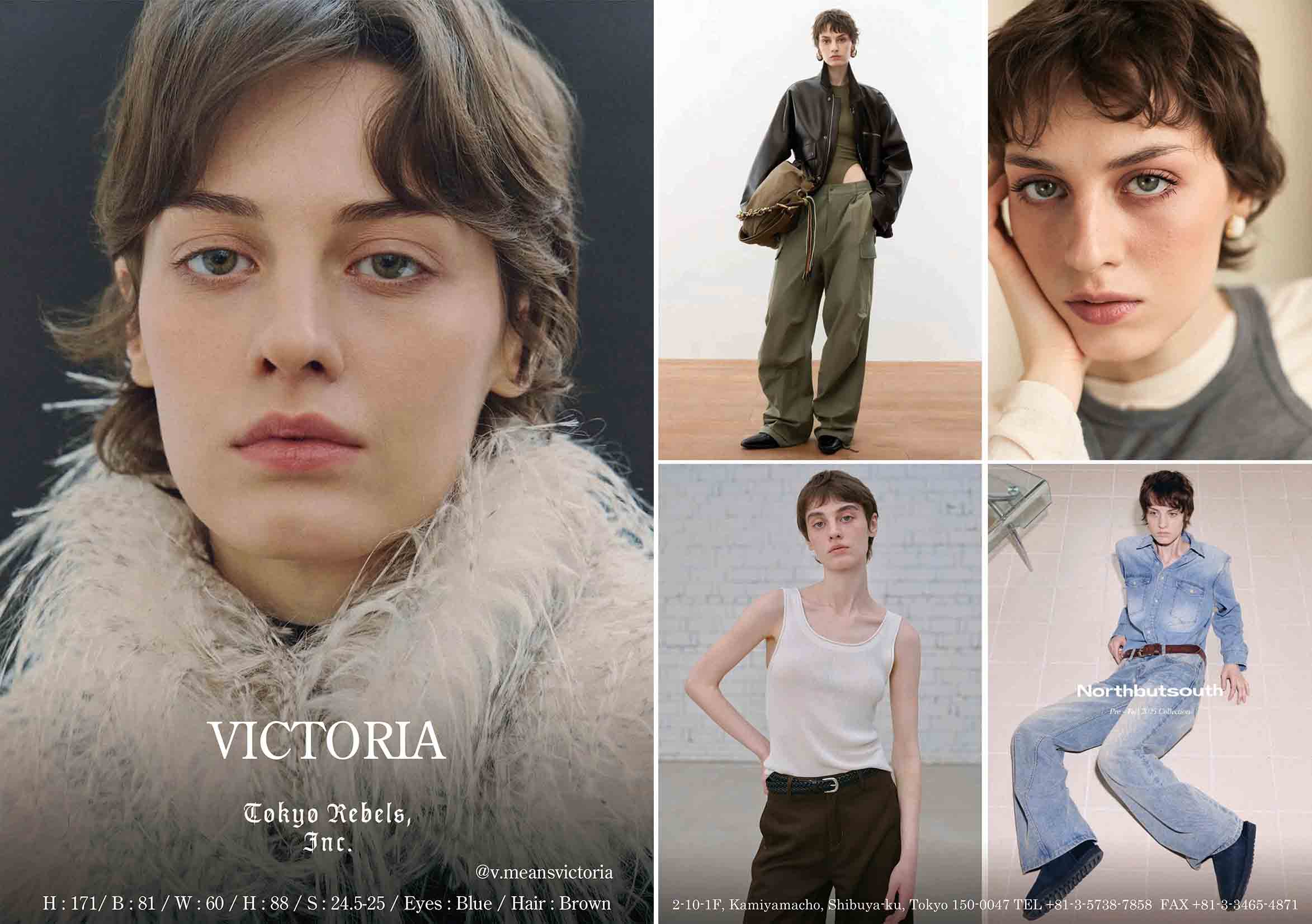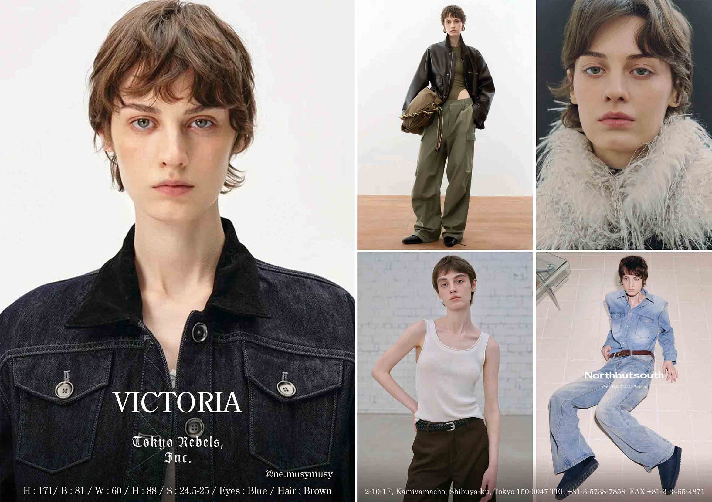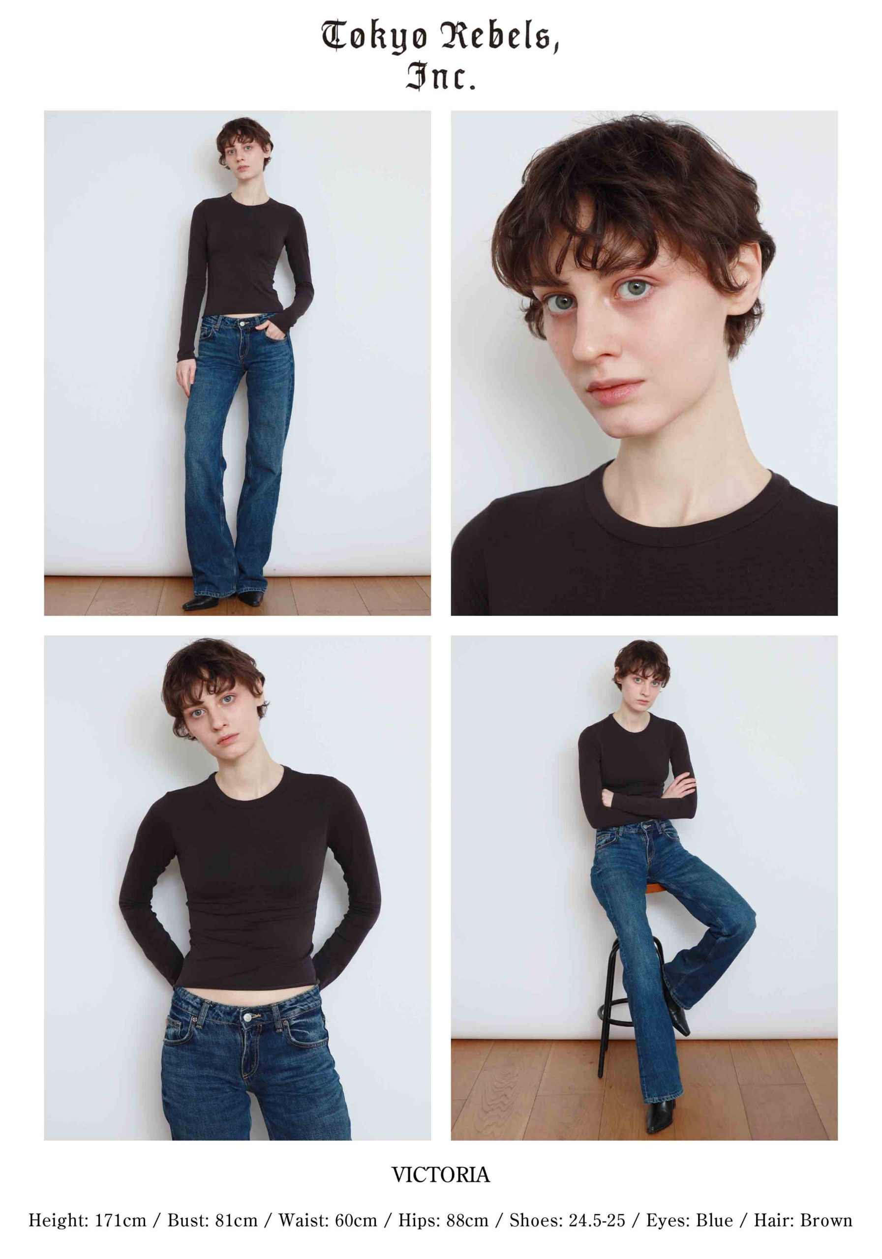 height : 171 / bust : 81 / waist : 60 / hips : 88 /shoes : 24.5-25 / eyes : Blue / hair : Brown